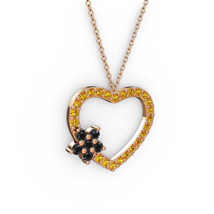Siyah zirkon ve sitrin 14 ayar rose altın kolye (40 cm rose altın rolo zincir)