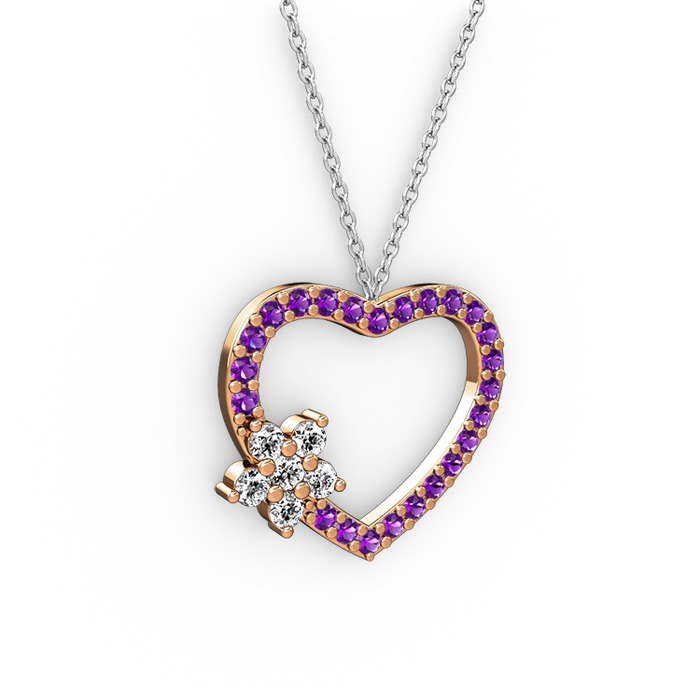 Swarovski ve ametist 18 ayar rose altın kolye (40 cm beyaz altın rolo zincir)