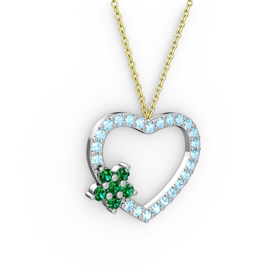 Yeşil kuvars ve akuamarin 925 ayar gümüş kolye (40 cm altın rolo zincir)