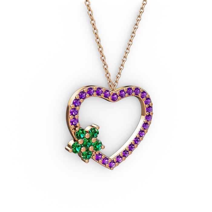 Yeşil kuvars ve ametist 14 ayar rose altın kolye (40 cm rose altın rolo zincir)