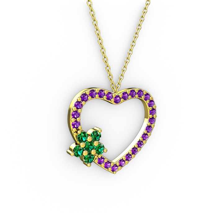 Yeşil kuvars ve ametist 8 ayar altın kolye (40 cm gümüş rolo zincir)
