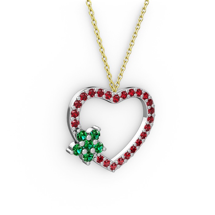 Yeşil kuvars ve garnet 18 ayar beyaz altın kolye (40 cm altın rolo zincir)