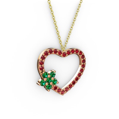 Yeşil kuvars ve garnet 18 ayar rose altın kolye (40 cm altın rolo zincir)