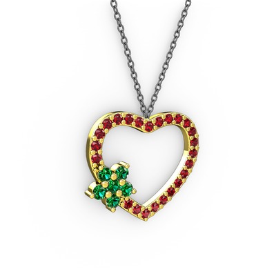 Yeşil kuvars ve garnet 8 ayar altın kolye (40 cm gümüş rolo zincir)