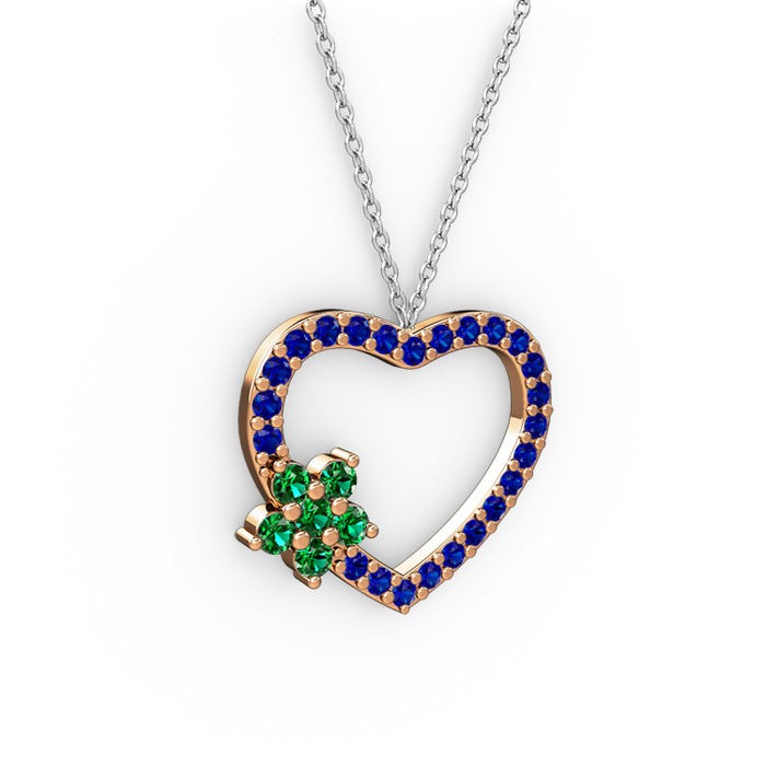 Yeşil kuvars ve lab safir 18 ayar rose altın kolye (40 cm beyaz altın rolo zincir)