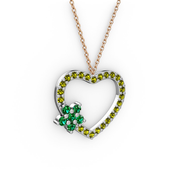 Yeşil kuvars ve peridot 925 ayar gümüş kolye (40 cm rose altın rolo zincir)
