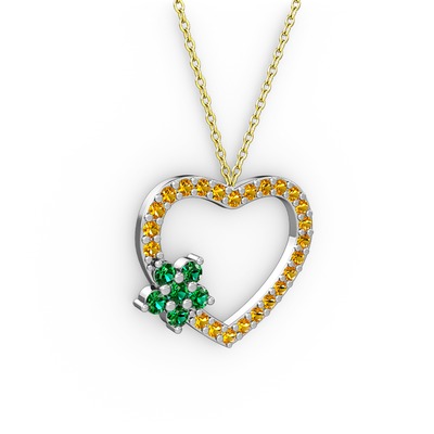 Yeşil kuvars ve sitrin 925 ayar gümüş kolye (40 cm altın rolo zincir)