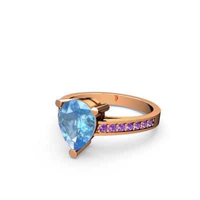 Akuamarin ve ametist 14 ayar rose altın yüzük