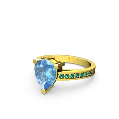 Akuamarin ve yeşil kuvars 14 ayar altın yüzük