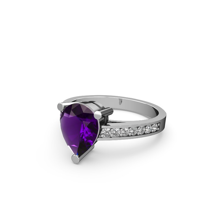 Ametist ve swarovski 18 ayar beyaz altın yüzük