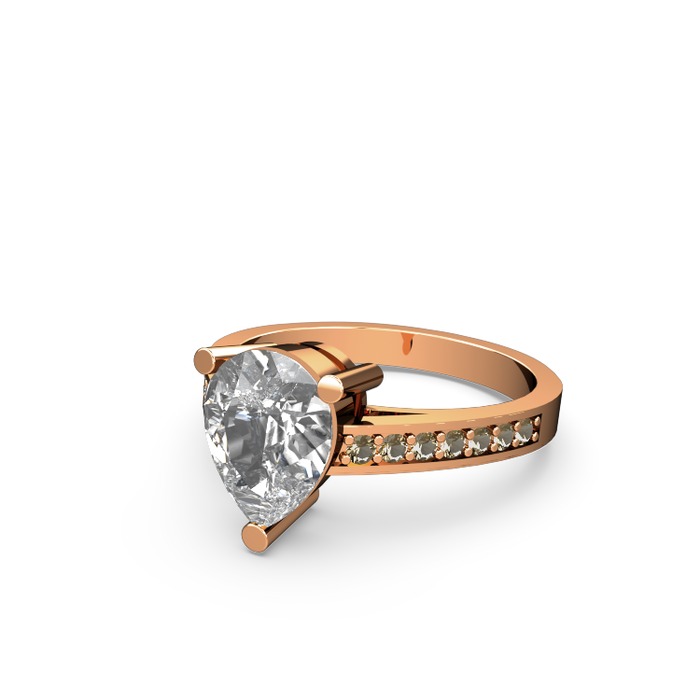 Beyaz zirkon ve dumanlı kuvars 925 ayar rose altın kaplama gümüş yüzük