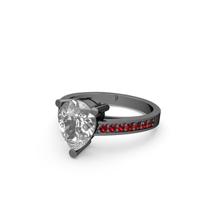 Beyaz zirkon ve garnet 925 ayar siyah rodyum kaplama gümüş yüzük
