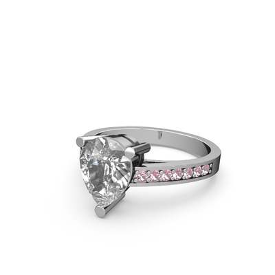 Beyaz zirkon ve pembe kuvars 8 ayar beyaz altın yüzük