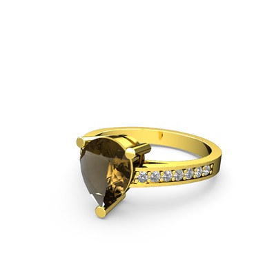 Dumanlı kuvars ve beyaz zirkon 8 ayar altın yüzük