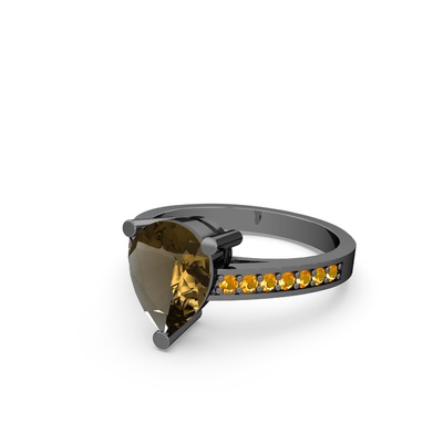Dumanlı kuvars ve sitrin 925 ayar siyah rodyum kaplama gümüş yüzük