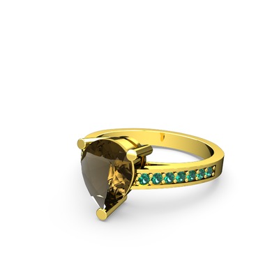 Dumanlı kuvars ve yeşil kuvars 14 ayar altın yüzük