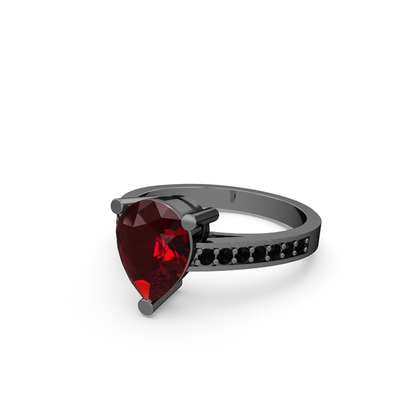 Garnet ve siyah zirkon 925 ayar siyah rodyum kaplama gümüş yüzük