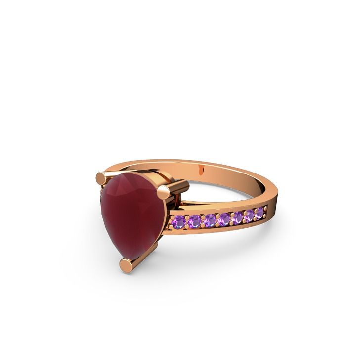 Kök yakut ve ametist 925 ayar rose altın kaplama gümüş yüzük