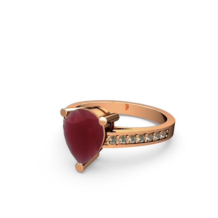Kök yakut ve dumanlı kuvars 18 ayar rose altın yüzük