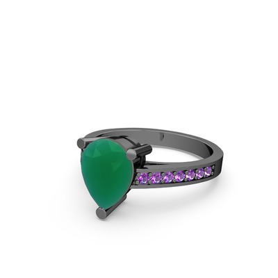 Kök zümrüt ve ametist 925 ayar siyah rodyum kaplama gümüş yüzük