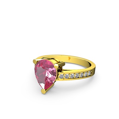 Pembe kuvars ve beyaz zirkon 8 ayar altın yüzük