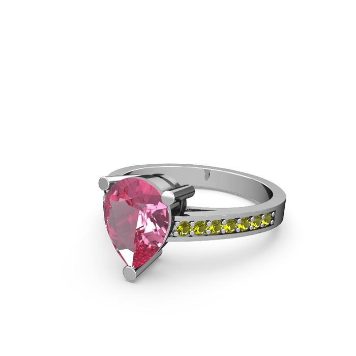 Pembe kuvars ve peridot 8 ayar beyaz altın yüzük