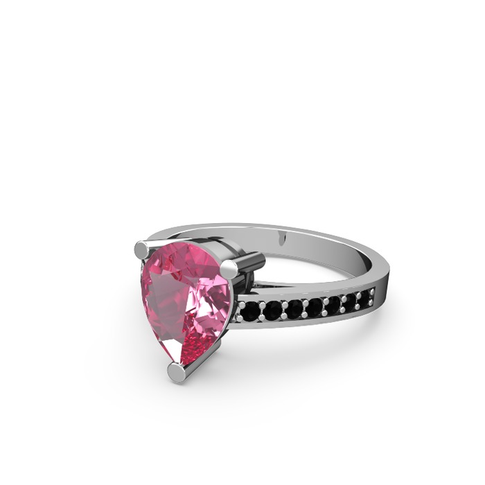 Pembe kuvars ve siyah zirkon 18 ayar beyaz altın yüzük