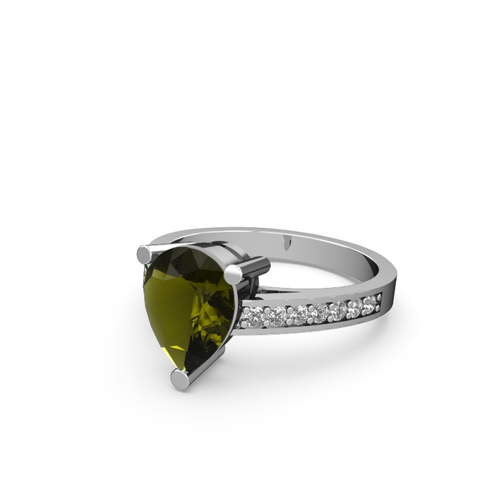 Peridot ve beyaz zirkon 8 ayar beyaz altın yüzük