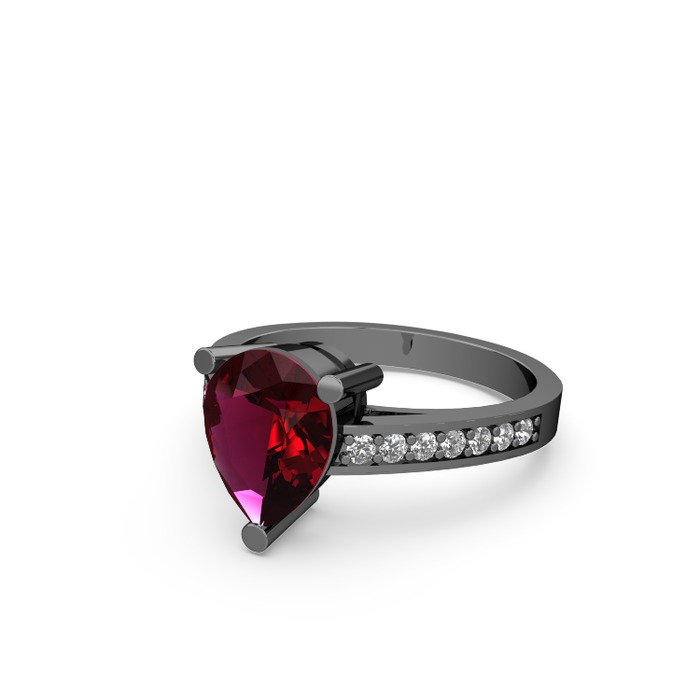 Rodolit garnet ve swarovski 925 ayar siyah rodyum kaplama gümüş yüzük