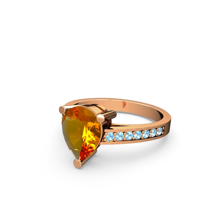 Sitrin ve akuamarin 925 ayar rose altın kaplama gümüş yüzük