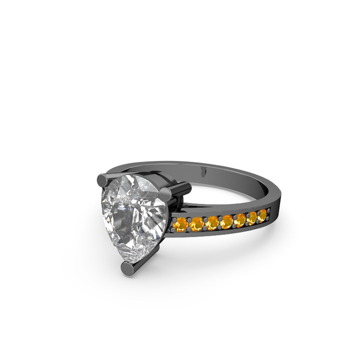 Swarovski ve sitrin 925 ayar siyah rodyum kaplama gümüş yüzük