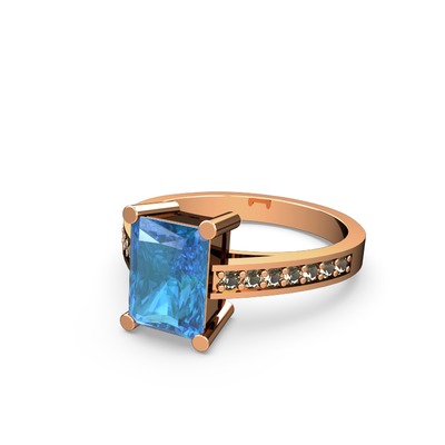 Akuamarin ve dumanlı kuvars 925 ayar rose altın kaplama gümüş yüzük