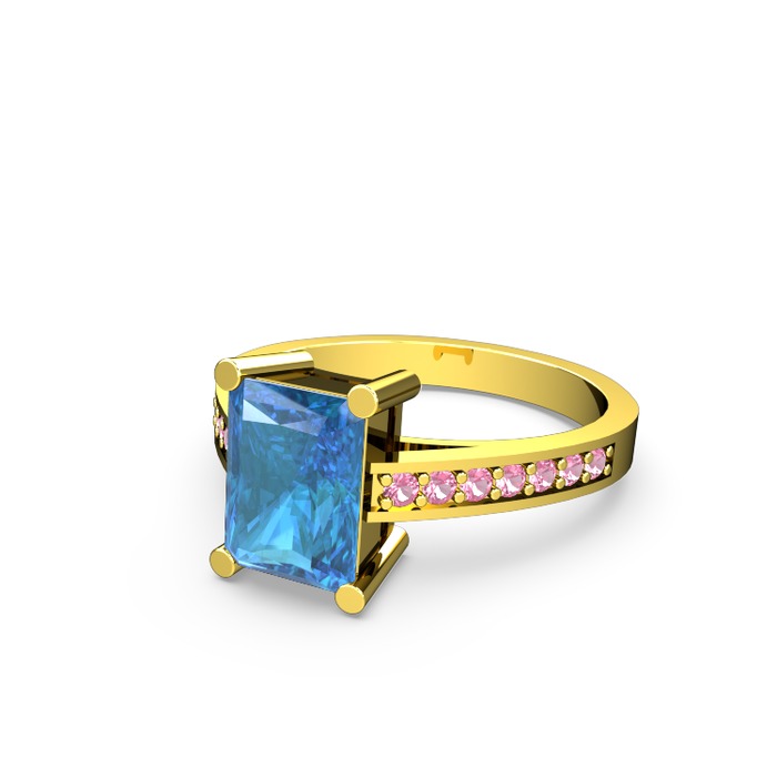 Akuamarin ve pembe kuvars 14 ayar altın yüzük