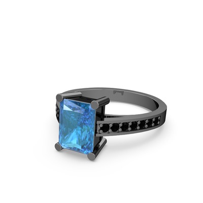 Akuamarin ve siyah zirkon 925 ayar siyah rodyum kaplama gümüş yüzük