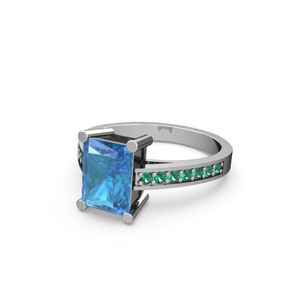 Akuamarin ve yeşil kuvars 8 ayar beyaz altın yüzük