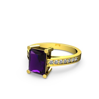 Ametist ve pırlanta 18 ayar altın yüzük (0.21 karat)