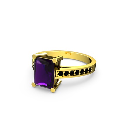 Ametist ve siyah zirkon 925 ayar altın kaplama gümüş yüzük