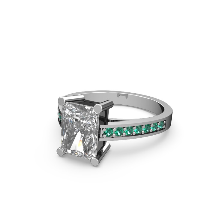 Beyaz zirkon ve yeşil kuvars 14 ayar beyaz altın yüzük
