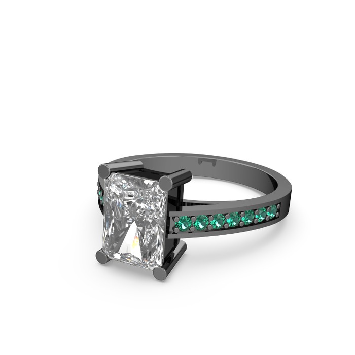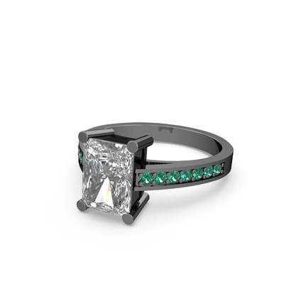 Beyaz zirkon ve yeşil kuvars 925 ayar siyah rodyum kaplama gümüş yüzük