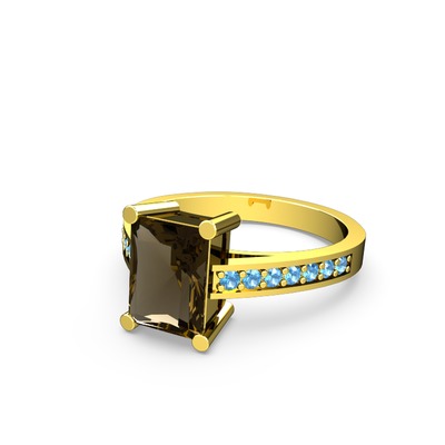Dumanlı kuvars ve akuamarin 14 ayar altın yüzük