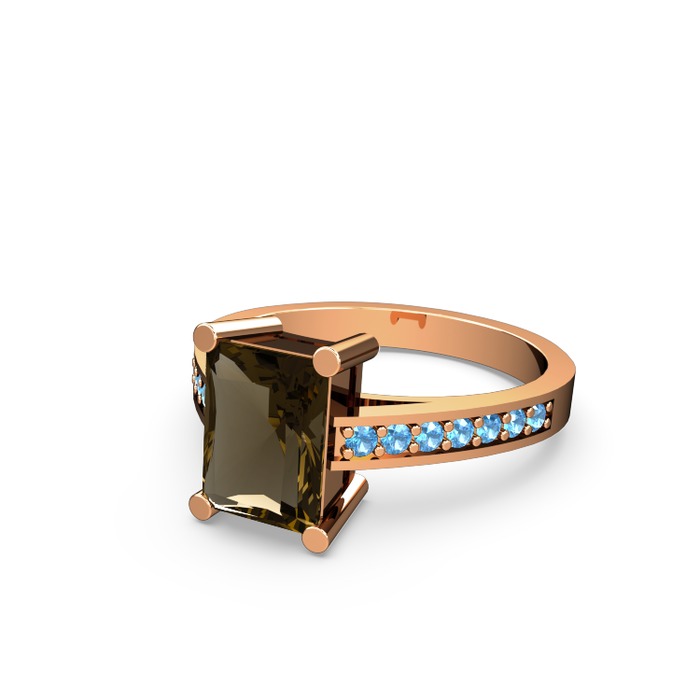 Dumanlı kuvars ve akuamarin 18 ayar rose altın yüzük