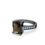Dumanlı kuvars ve akuamarin 925 ayar siyah rodyum kaplama gümüş yüzük