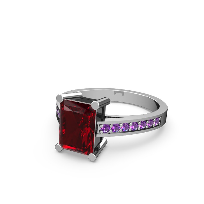 Garnet ve ametist 8 ayar beyaz altın yüzük