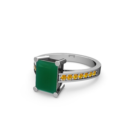 Kök zümrüt ve sitrin 18 ayar beyaz altın yüzük