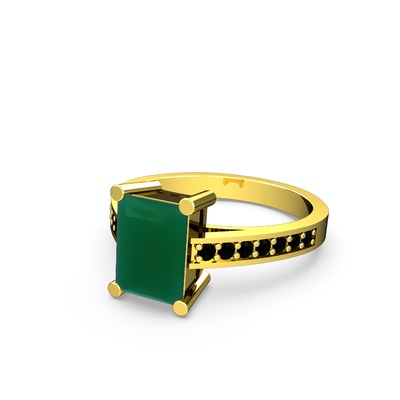 Kök zümrüt ve siyah zirkon 18 ayar altın yüzük