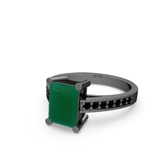Kök zümrüt ve siyah zirkon 925 ayar siyah rodyum kaplama gümüş yüzük