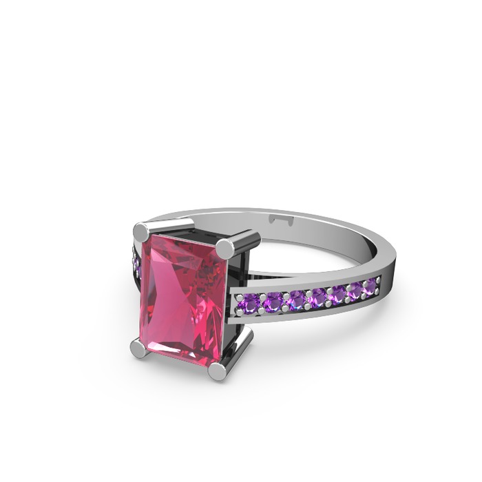 Pembe kuvars ve ametist 14 ayar beyaz altın yüzük