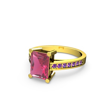 Pembe kuvars ve ametist 8 ayar altın yüzük