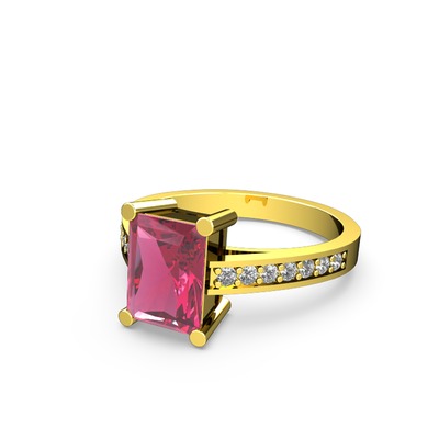 Pembe kuvars ve pırlanta 8 ayar altın yüzük (0.21 karat)