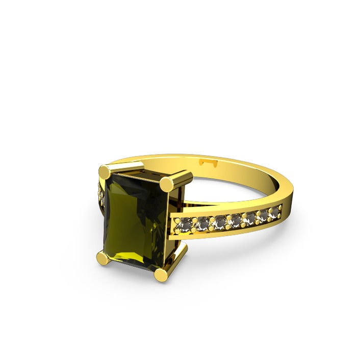 Peridot ve dumanlı kuvars 14 ayar altın yüzük